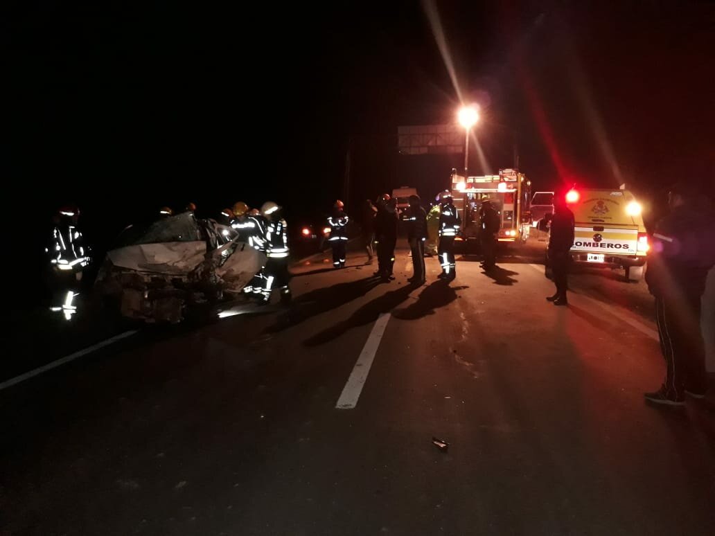 Alrededor de las 5.15 de este domingo se registró un grave accidente en ruta 33 kilómetro 638, pasando unos 800 metros el peaje de Venado Tuerto en dirección a Murphy. En el lugar colisionaron de frente un automóvil Fiat Siena (remis) y un utilitario Fiat Strada. Producto del tremendo impacto, dos personas perdieron la vida. Se trata del conductor del auto -un remisero de 62 años con domicilio en Venado Tuerto que regresaba de llevar pasajeros a Murphy- y uno de los tripulantes del utilitario, un joven de 33 años oriundo de Carmen.
