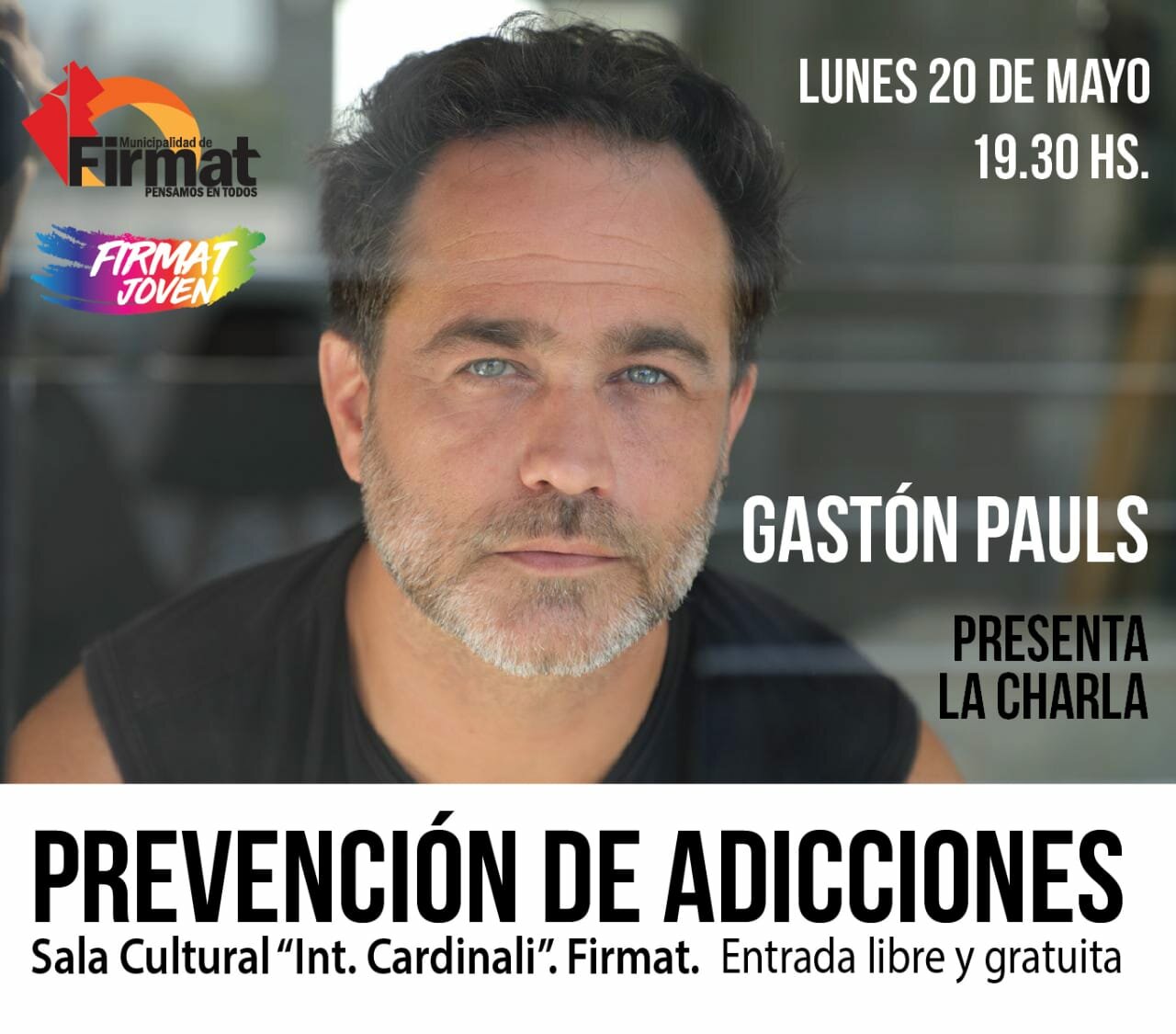 El lunes 20 de mayo, el actor Gastón Pauls llegará a Firmat para coordinar una serie de charlas sobre prevención de adicciones.
